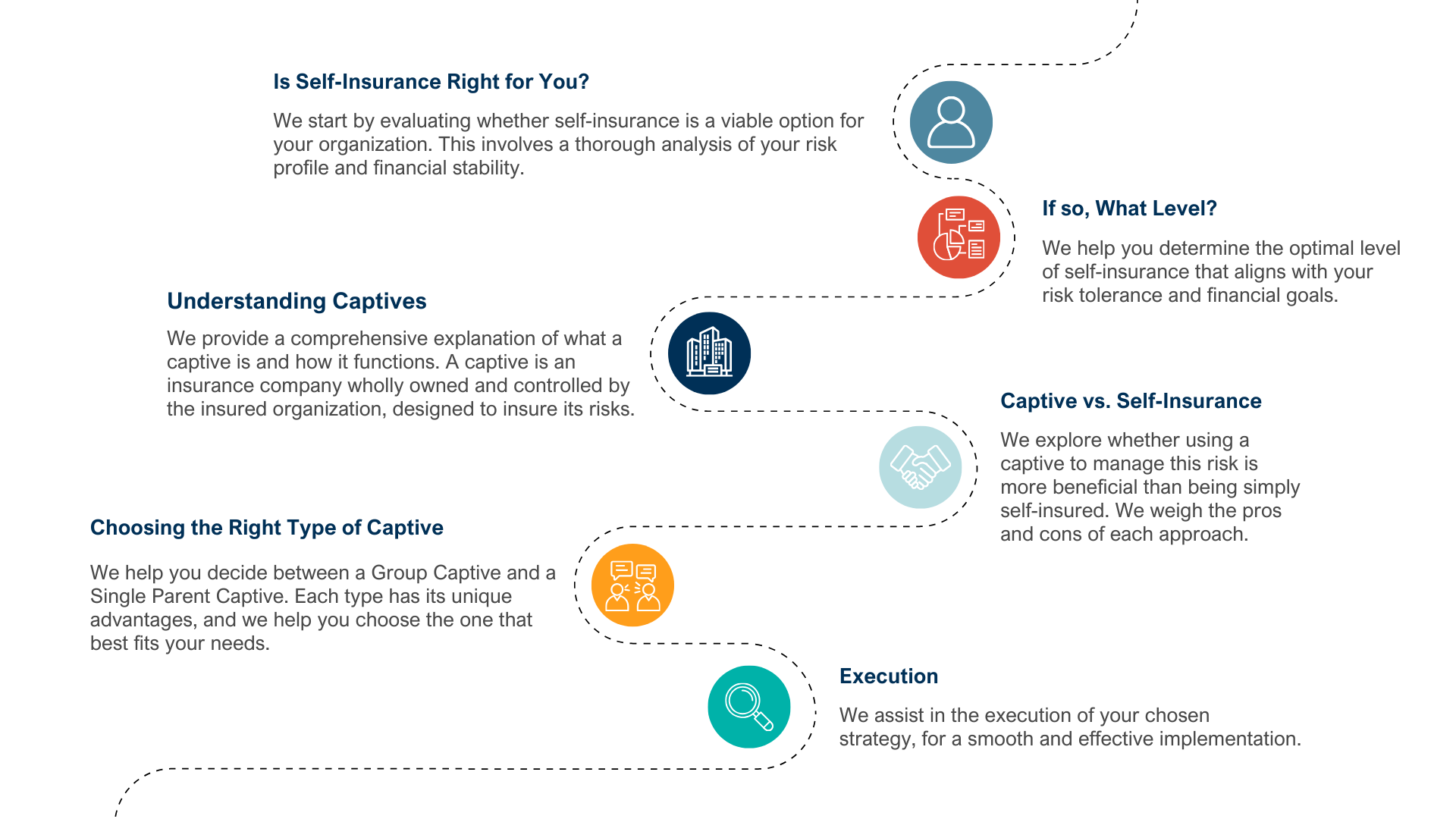 We prioritize education in every consulting engagement. Our goal is to ensure you understand all aspects of self-insurance and captive insurance before making any decisions. Here’s how we guide you through the process: